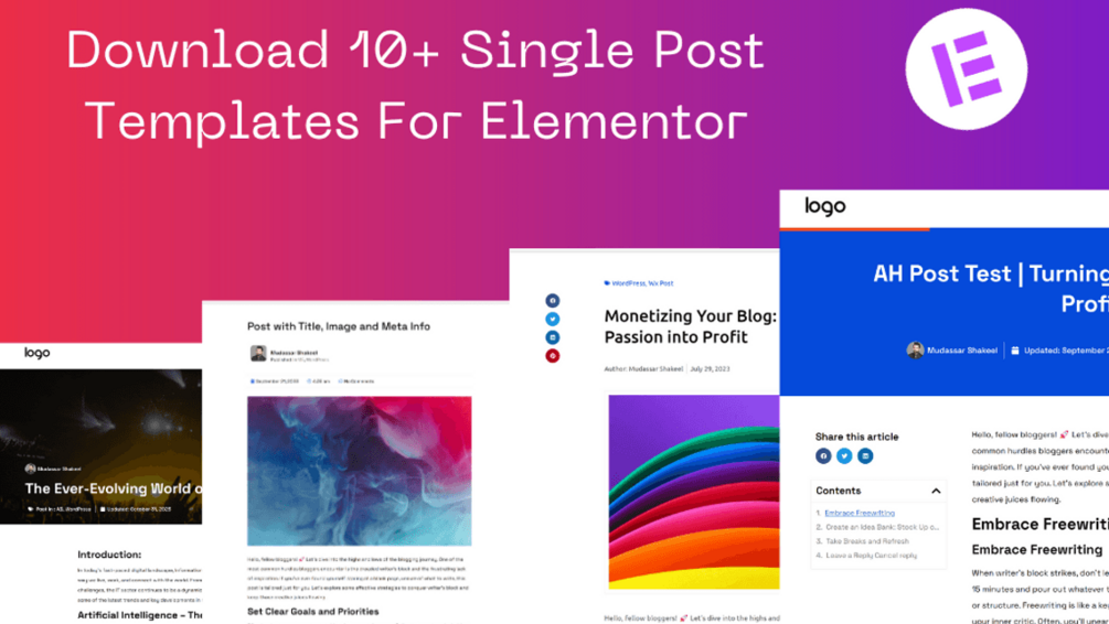 The Elementor Single Post Template has simple and unique layouts. It's easy-to-use design that makes your blog posts look great ?. You can change the colors, fonts, and anything else you like. These templates is very flexible and dynamic.